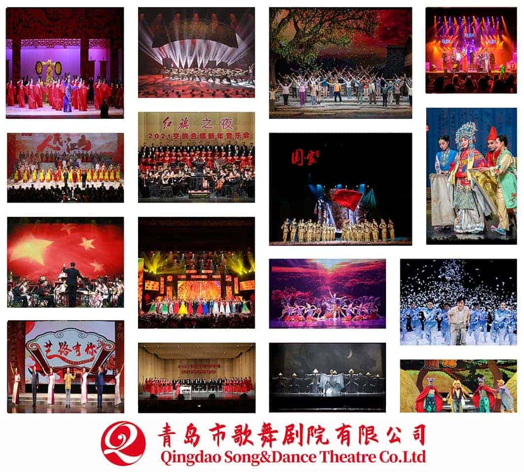 近年來,劇院更加注重藝術創作生產,成功創作演出了大型舞蹈詩《大海夢幻》、大型歌舞晚會《蔚藍青島》、大型民族歌舞《龍飛鳳舞》、方言劇《劈柴院傳奇》、舞劇《東廂記》《紅高梁》《法顯》、大型黨性教育音樂情景劇《誓言》、大型音樂舞蹈史詩《人民·江山》、民族歌劇《馬向陽下鄉記》《國·家》、呂劇《百川東到海》等。圍繞“惠民院線”這一島城演出品牌,創作演出了《炫舞青春》舞蹈專場晚會、《看上去很美》現代舞蹈專場晚會、當代舞劇《星河》、《奧斯卡金曲》《宮崎駿動漫視聽》《黎明四季》《歷史的回顧》交響音樂會、交響組曲《五月的風》、《征程》流行管弦音樂會、《搗蛋鬼維克多》系列交響兒童劇、《青島市新春民族音樂會》《中國夢》《國風雅韻-傳統民族樂器獨奏作品》、《歷史的豐碑》民族音樂會、《綻放》、《古典也時尚》現代民族音樂會、《鄧麗君金曲》演唱會、《致青春》音樂情景劇、《向共和國致敬》經典歌劇片段主題晚會、《永恒的旗幟》情景歌會、“慢慢喜歡你”不插電live流行音樂會、《墻頭記》《借年》《小姑賢》《姊妹易嫁》等傳統呂劇、《孝感天下》《最美青島人》《笑談曲苑》《春暖花開》《歡歌笑語頌百年》等曲藝專場晚會、《大懶貓》《奔跑吧,公主》《三個丑家伙》《因為愛》《大俠慢吞吞》《年獸傳說》等原創兒童劇以及《長征組歌》《中外名曲》《頌歌獻給黨》合唱音樂會等數十臺演出,演出票房爆滿,觀眾好評如潮。期間,劇院多次參與組織、策劃、承辦省、市級各類大型節慶活動,成功舉辦了歷屆青島國際啤酒節、海洋節、菏澤國際牡丹節、2008奧帆賽開幕式文藝演出、上合峰會大型文藝演出、多次應邀參加央視春節、元旦、國慶等大型晚會錄制、創排演出慶祝改革開放40周年大型情景歌舞劇《筑夢》、2019年參加慶祝人民海軍成立70周年演出等大型文藝演出等;多次隨市領導出訪徳國、英國、韓國、日本、美國、俄羅斯、澳大利亞、新加坡、馬來西亞、泰國、贊比亞、坦桑尼亞、埃塞俄比亞、斯里蘭卡等國家進行文化交流演出。